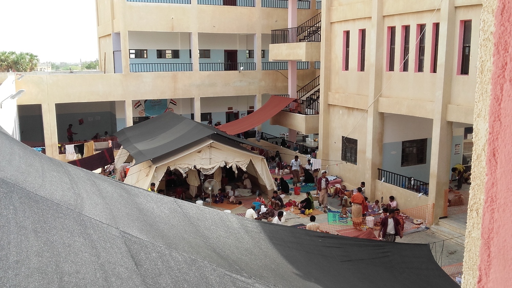 A principios de mayo, abrimos un centro para tratar el cólera enfrente del hospital de MSF en Abs, en el oeste de Yemen. El edificio es una escuela de primaria, cuyos alumnos se encuentran de vacaciones actualmente. Al inicio de la epidemia, cuando el número de pacientes era predecible, podíamos tratarlos y aislarlos en el propio hospital. Sin embargo, a medida que el brote avanzaba, el número de afectados iba aumentando tanto que nos quedamos sin espacio en el hospital.