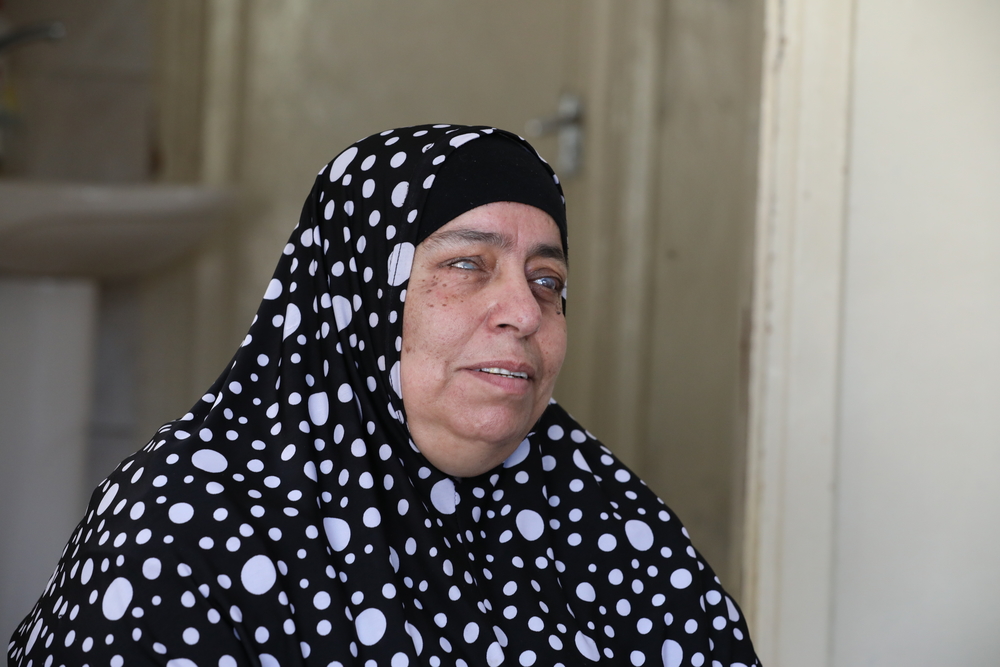 "Llevamos aquí desde 2013. La violencia y la tensión hacían muy difícil nuestra vida en Siria, pero el viaje hasta aquí tampoco fue fácil. Incluso tuvimos que caminar parte del viaje. Cuando nos acercamos al puesto fronterizo, un guardia se percató de que yo era ciega. Me tomó de la mano y me condujo durante la última parte del camino. A pesar de que tuvimos algunas oportunidades de ir a vivir a Estados Unidos y Canadá, estoy feliz de que estemos en Jordania, ya que es un país que comparte tradiciones con el nuestro. Nuestra mayor preocupación ahora es el dinero. Somos cinco personas viviendo aquí y nuestro hijo apenas gana lo necesario para pagar el alquiler y los alimentos".