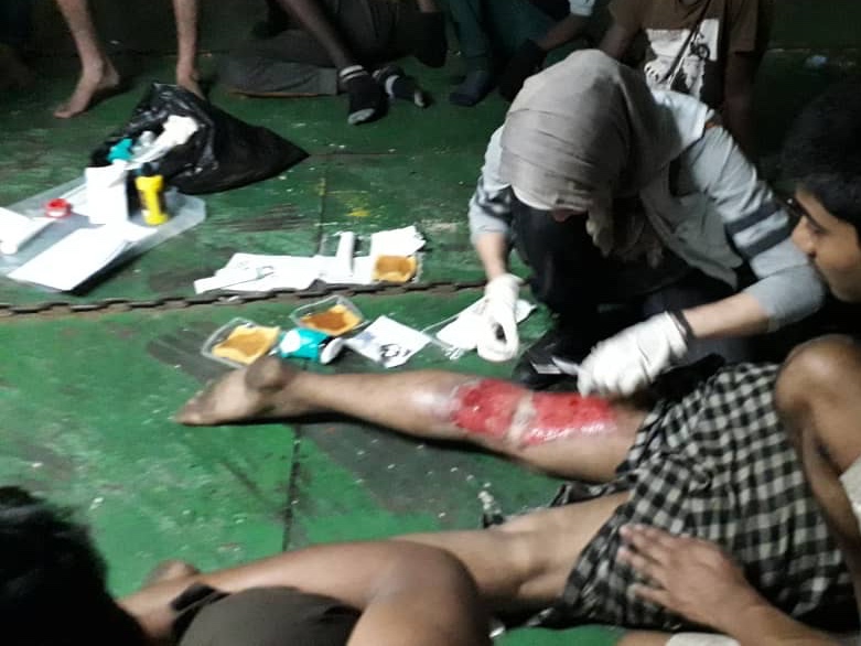Nuestros equipos trataron principalmente problemas médicos relacionados con las quemaduras causadas por derrames de gasolina del motor de los botes en que viajaban, y fueron testigos de la desesperación en la que se encuentran. El grupo de personas incluye menores de edad que han sido mantenidos cautivos y torturados por traficantes en Libia durante un año, o incluso más, para obtener dinero.
