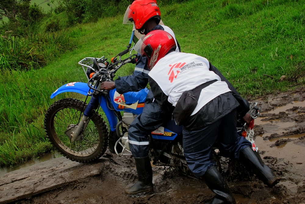 Una red de motociclistas hace posible la asistencia de MSF a habitantes de zonas remotas en la República Democrática del Congo (RDC)