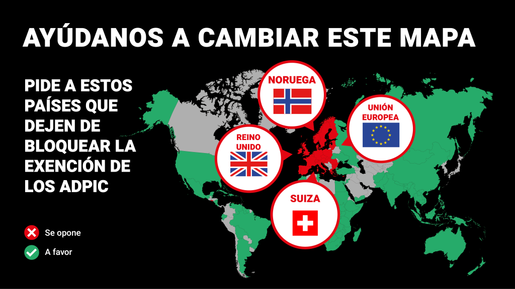 Para que sea más eficaz, MSF destaca que el texto final de la exención de los ADPIC debe garantizar: que el alcance de la exención no se limite a las vacunas y se aplique a todas las tecnologías de salud esenciales (incluyendo pruebas y tratamientos); que se supriman todos los derechos de propiedad intelectual y su aplicación; y que la duración de la exención sea de al menos cinco años para permitir que la fabricación y el suministro de las herramientas de salud para combatir la COVID-19 (incluyendo sus materiales y componentes) se puedan preparar, ampliar, diversificar y mantener.
