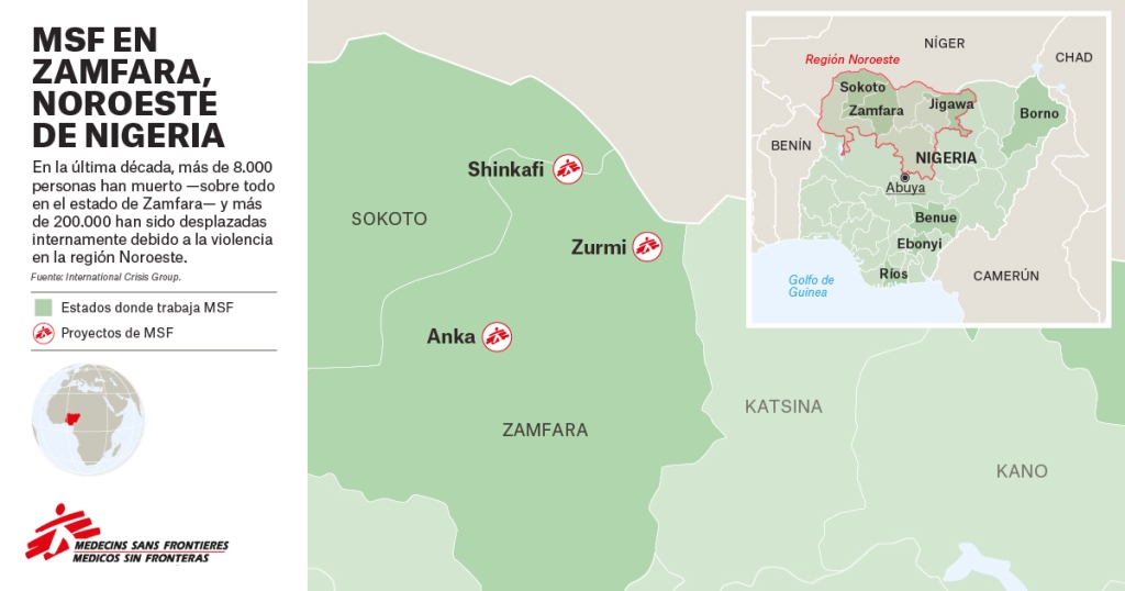 MSF trabaja en siete estados de Nigeria: Borno, Jigawa, Zamfara, Sokoto, Benue, Ebonyi y Rivers. Trabajamos en Nigeria desde 1996.