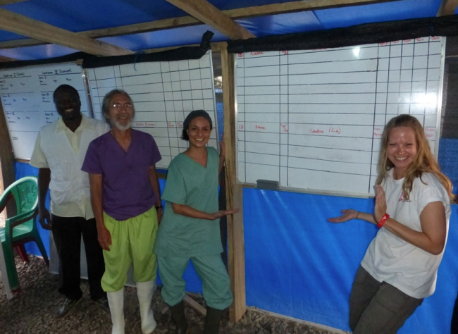 Es cierto que el médico es uno de los únicos profesionales que lucha sin descanso para quedarse sin trabajo, y en este tipo de proyectos, es aún más cierto. Pero, hace solo una semana que no teníamos descanso, que pasábamos el tiempo tratando de optimizar las entradas a la zona de alto riesgo para darles el máximo de tiempo a demasiados pacientes en condiciones terribles. Y resulta difícil de creer que hoy en la mañana dimos de alta al último y sonriente paciente que salió caminando con su carta de “negativo para Ébola” en la mano, dispuesto a continuar su vida. Y su trabajo, pues el último paciente que tuve hoy es un miembro de nuestro equipo. Él trabaja en el equipo de enterramientos. Uno de los trabajos más tristes y pesados en este tiempo.