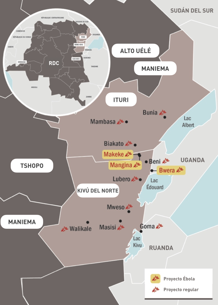 • 30 de julio: MSF es informada sobre casos sospechosos de Ébola cerca de Beni/Mangina, en Kivu del Norte.